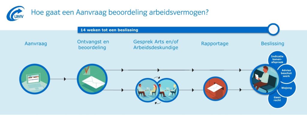Het UWV zal je aanvraag beoordelen. Soms vragen ze je in een persoonlijk gesprek je aanvraag toe te lichten. Uiteraard ben je vrij om iemand mee te nemen naar deze afspraak, zoals een familielid of begeleider.